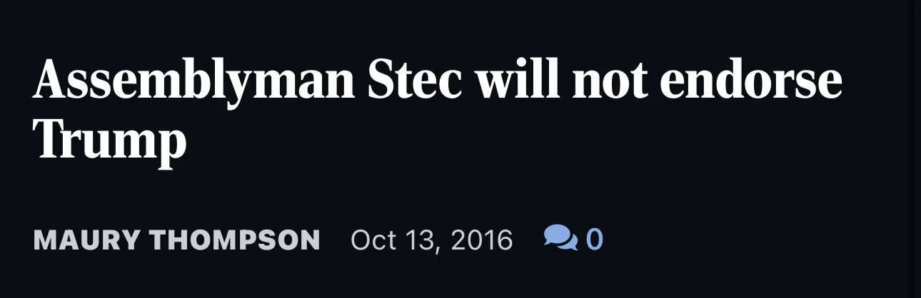 Fast forward to 2024. Trump’s influence on the Republican Party is stronger than ever. Yet, insiders report that Stec once again resisted. According to multiple sources, he vehemently opposed and complained behind closed doors about signing a letter of endorsement from the Senate Republican Conference, viewing it as forced and insincere. It’s no surprise, Trump’s base voters aren’t buying his new tune. A tune that ironically changed as he jumped into the fray to replace Elise Stefanik whose ties to Trump are anything but cagey, making it questionable if the base will be with him in a special election or will sit on their hands as has often happened in past Congressional special elections in New York.